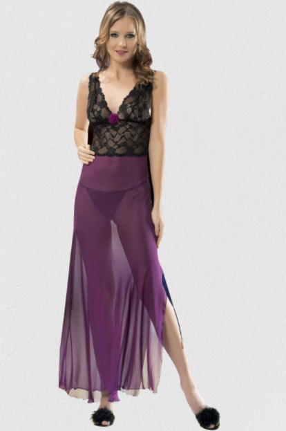 Farklı tasarım mor gecelikler de mümkündür. Hemen görsellerimizde yer alan koyu mor ve siyah olan gecelik modeli tamamen dantelden yapılmıştır. Uzun olmasına rağmen farklı çizgileri de olan bir modeldir. Ayrıca siyah renk ile beraber oldukça şık bir görünüş de sağlamıştır. Eğer bacak boyunuz uzunsa o zaman bu tarz seksi modelleri kullanmanızı tavsiye ederiz. Bu sayede oldukça seksi ve zarif görüneceksiniz. Ancak bacak boyunuz kısa ise o zaman dantelin uzunluğunu ayarlamanızı tavsiye ederiz.
