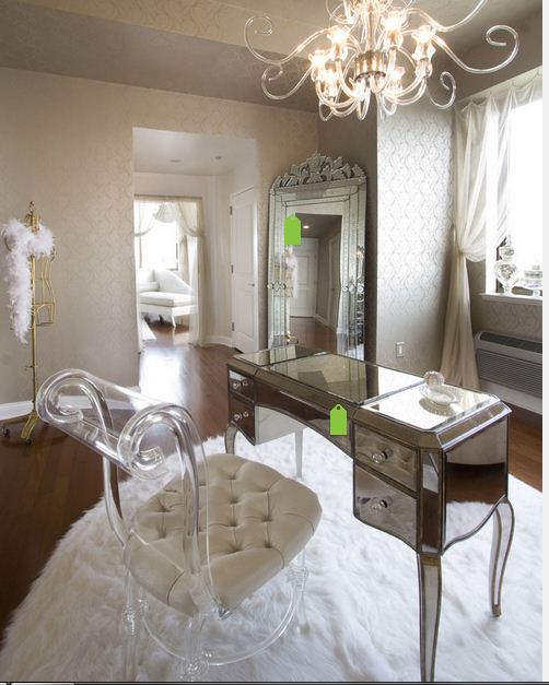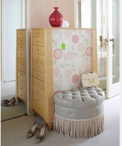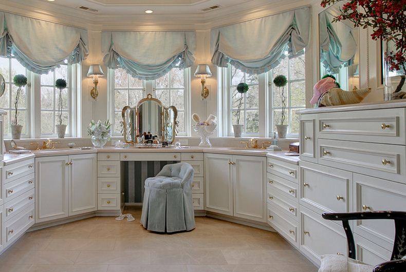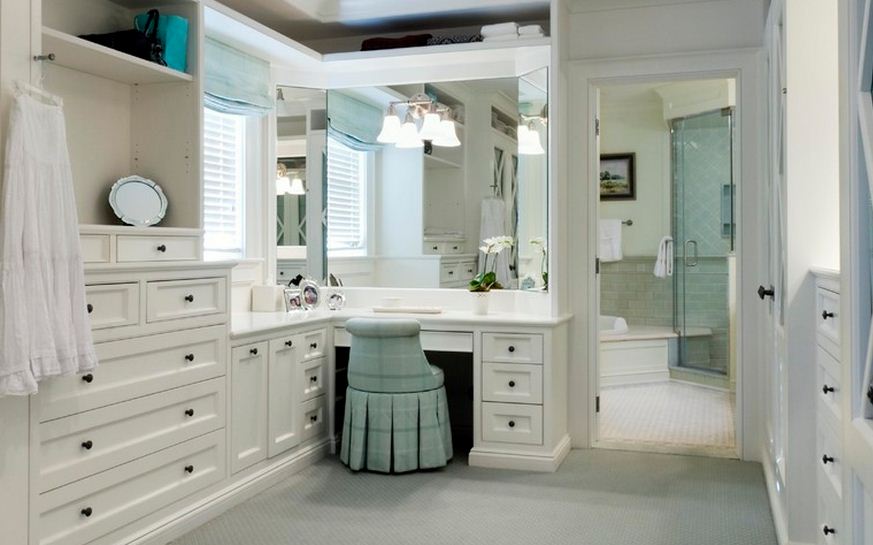 Giyinme odası dekorasyonunda  bence olmazsa olmaz makyaj masası ve uzun puflar.Bunun yanında büyük bir aynada şart.