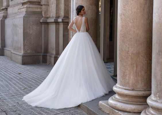 Sırt dekolteli gelinlik her 10 gelinden 8 ‘nin hayalidir. Hele ki sırtı güzel olan kadınların tercih etmesi gereken bir modeldir. Genel olarak zayıf olan kadınlara önerilir. 2021 yılının trend parçalarındandır.