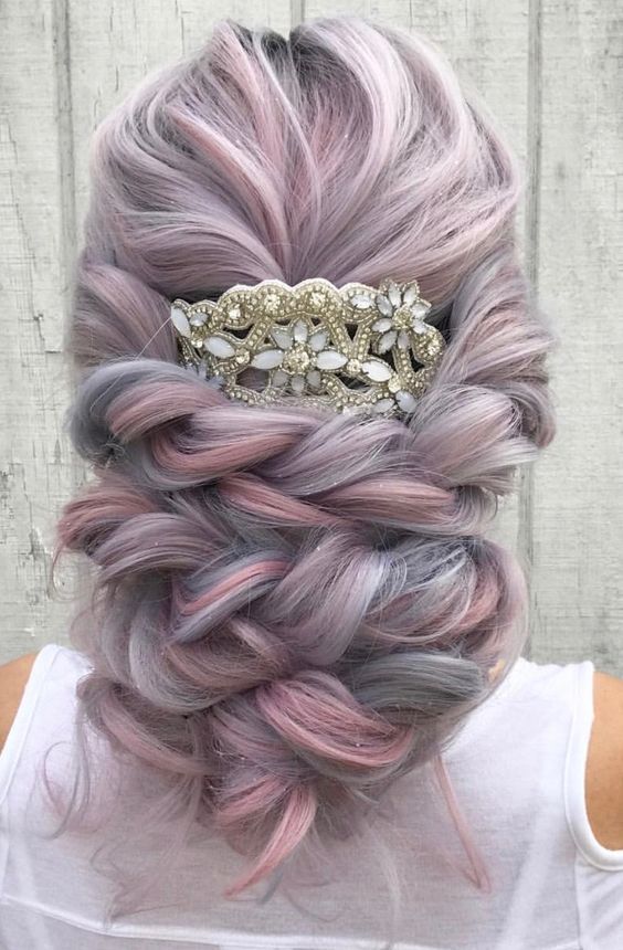 Fuşya, kırmızı, mor ya da pembe saçlar… Eğer cesur ruhlu bir kadınsanız; marjinal renkler size çok yakışacak. Saçlarınızı tepeden topuz yaparak; klasiklerden uzaklaşabilirsiniz. Bu model, gelinliğinizile oldukça uyumlu olacaktır.