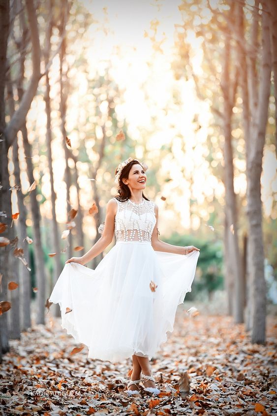 Fakat dış çekim ormanlık ya da dağlık bir alanda yapılacaksa; elbisenizden ziyade saç modelinize ve makyajınıza yoğunlaşmanız çok doğru olacaktır. Eğer ormanlık ve ağaçların bol olduğu bir alanda çekim yapılacaksa; saçlarınızı su dalgası yapabilir ve makyajınızı biraz iddialı yapabilirsiniz. Buna ek olarak yine açık renklerde tercih edeceğiniz elbiseler ile uyumu tamamen yakalayabilirsiniz.
