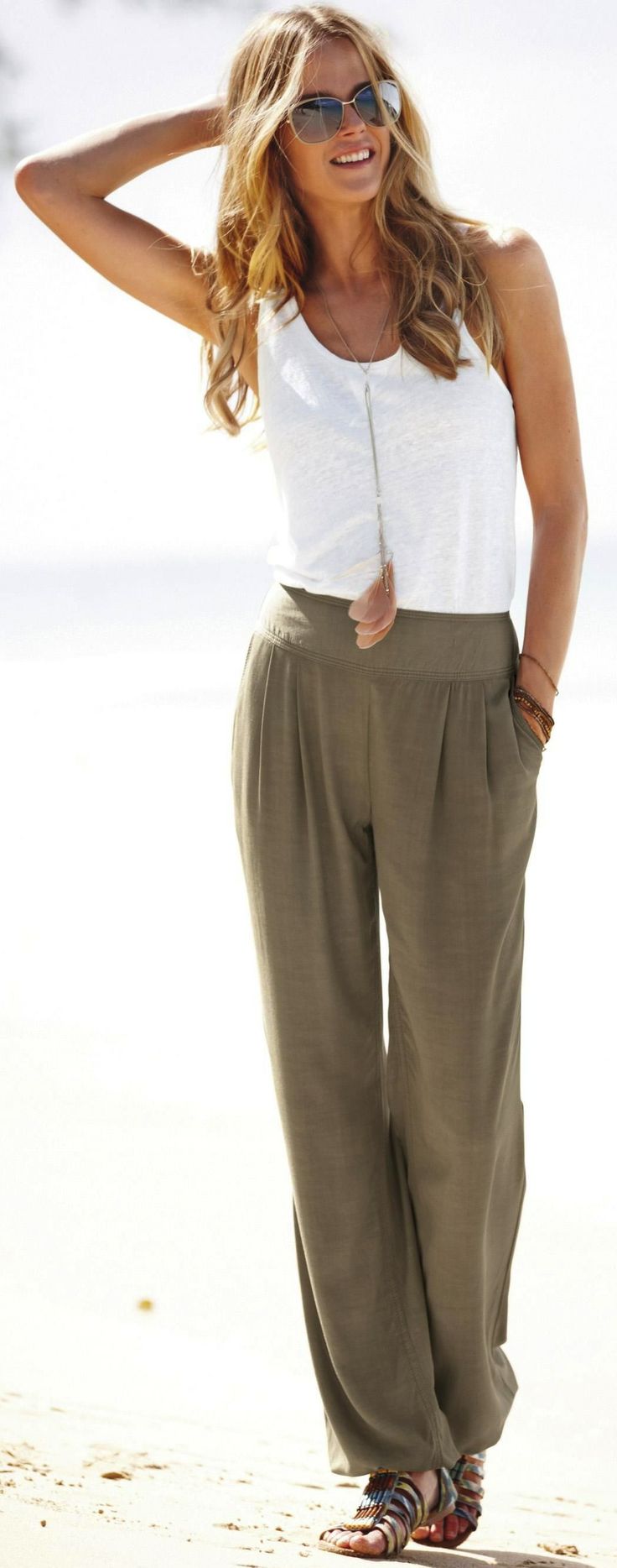 Beyaz tişörtlerin desenli pantolonlar ile kombini: Bu yaz birbirinden güzel desenleri ile pantolonlar yine bizimle beraber olacak. Pantolondaki desenler ile uyum sağlayabilecek sade ve düz renk bir tişört elbette. Hem pantolondaki desenlere bir üst bulmak zor olacağı için en pratik yöntem beyaz bir tişört.beyaz tshirt desenli pantolon kombini