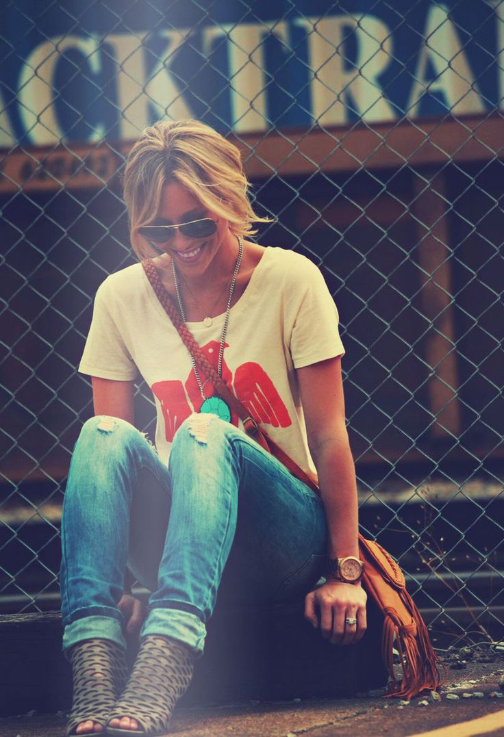 yaz icin beyaz tshirt ve jean yirtik pantolon kombin
