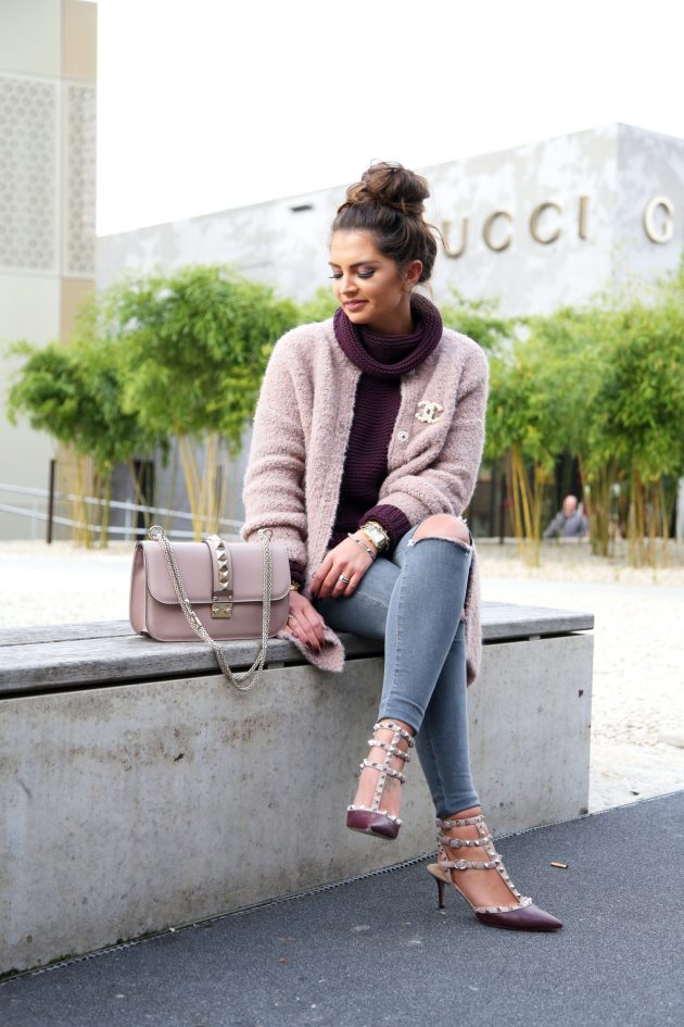 - Pembe kazakla gri pantolon kombini