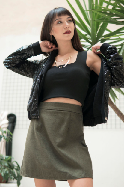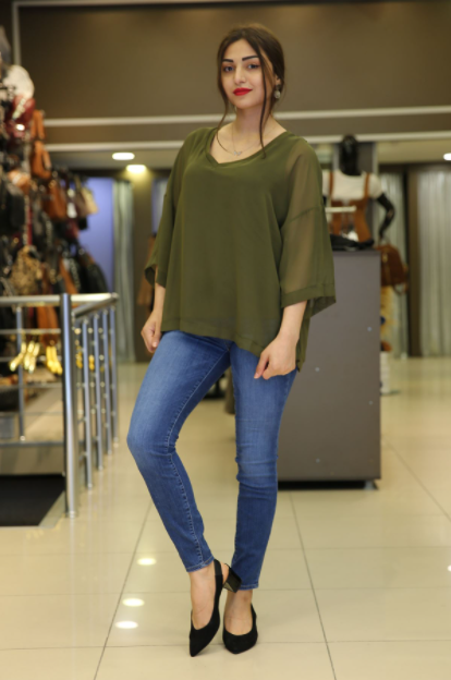 Haki ile yapılan kombinler arasında ilk göstereceğimiz olan model hemen yukarıdaki volanlı olan modeldir. Bu modelde göğüs kısmında oldukça geniştir. Bundan dolayı eğer memenizi daha büyük göstermek isterseniz o zaman bu modeli rahatlıkla kullanabilirsiniz. Volanları kat kat olduğundan dolayı meme bölgeniz daha büyük görünecektir. Ayrıca bir miktar göbek bölgenizi de kapatacağından dolayı eğer karın bölgesinde fazla kilonuz varsa kullanabilirsiniz. Spor bir model olduğundan beyaz kot pantolon ile kullanabilirsiniz.