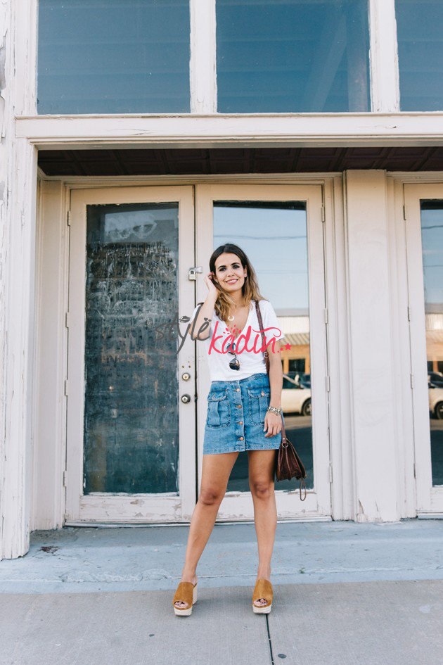 Rahat bir görünüm elde etmek istiyorsanız düz ayakkabılar, spor ayakkabılar ya da sandalet ile rahatlığı yakalayabilirsiniz. Kombin yaparken de önden düğmeli etek ile kot gömlek süper ikili olabilir. Önden düğmeli etek modelleri oldukça fazladır. Bundan dolayı kullanacağımız yere göre önden düğmeli etek modelimizi doğru seçmeliyiz. Özel günler için kısa boylu açık renkli önden düğmeli etek stillerini seçerken , ofis için daha orta boylu modeller seçilmeli, resmi durumlar içinse daha koyu renkli stiller ideal olacaktır. 2020 Yaz Sevimli ve Seksi Etek Modelleri