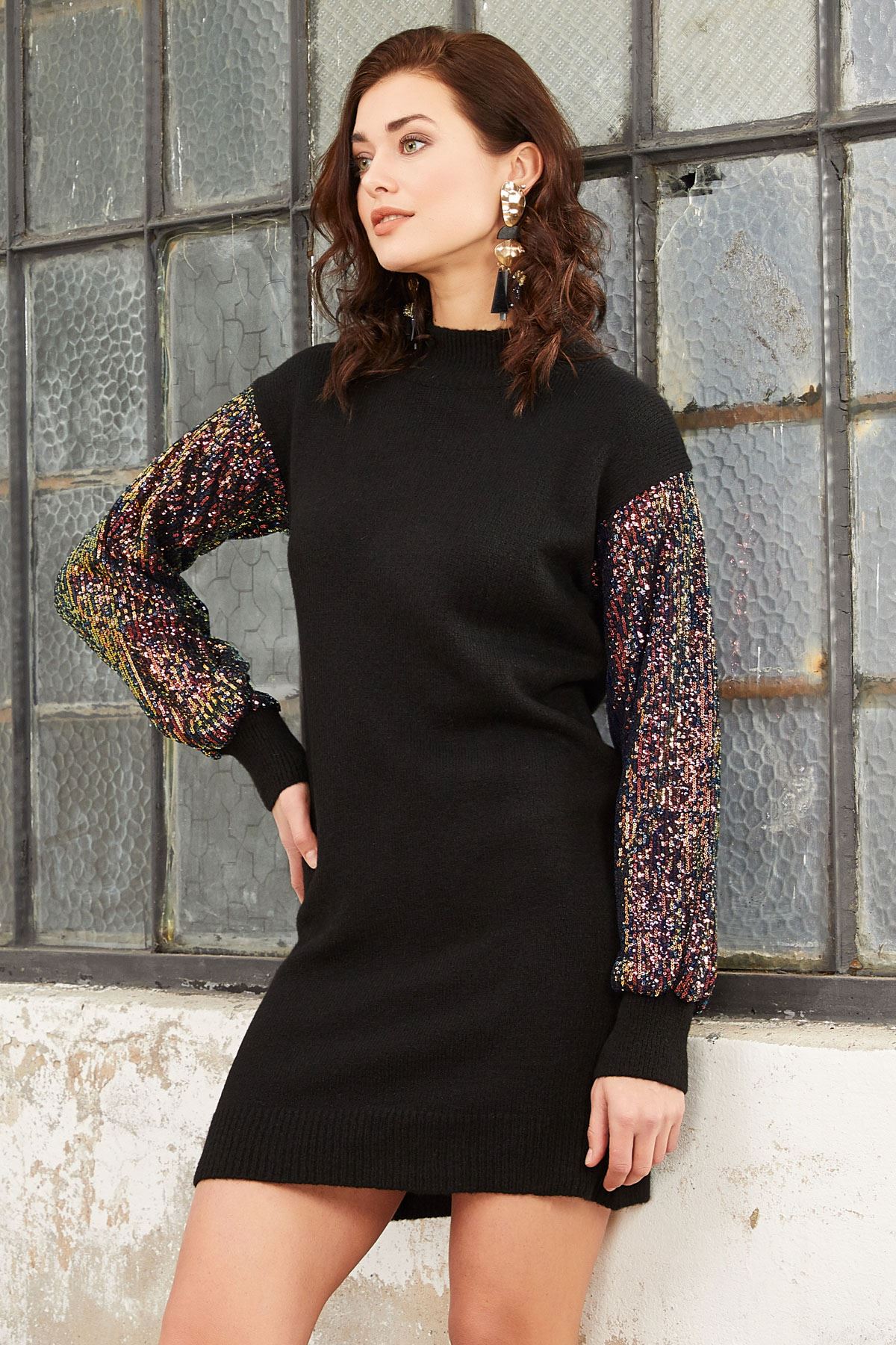 Eğer kombinlerke dikkat çekmek istemiyorsanız; uzun topuklu bir ayakkabı ve siyah payetli elbise sizin için uygundur. Bu kombini kolye, bileklik ya da küpe ile destekleyebilirsiniz.