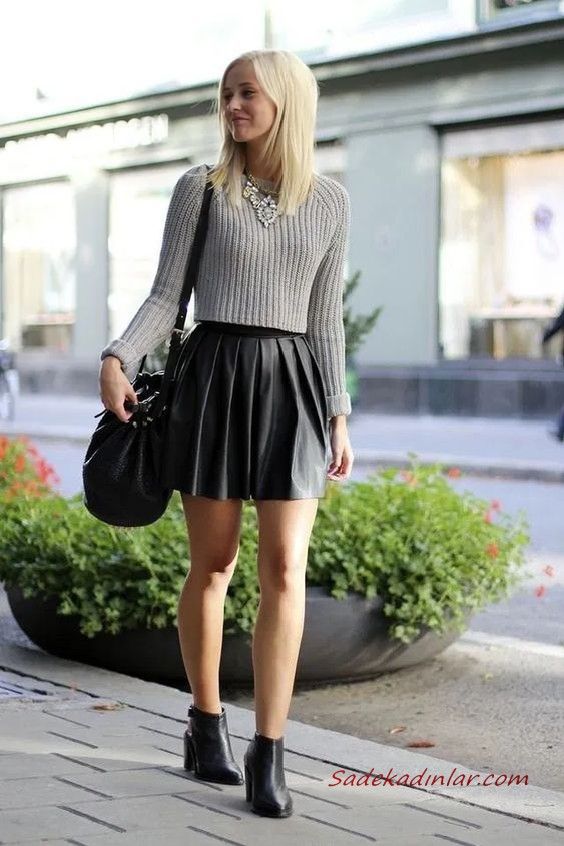 Bu etek modelleri daha yine deri bluz ve deri gömlek gibi parçalarla kombine edilerek daha iddialı bir formda kullanılacak. Deri elbise modelleri de yine birçok farklı kesimde üretilerek her tarzı yansıtacak şekilde kombinleri yapılacak. Yine bu parçalar deri uzun çizme ve deri bot gibi parçalarla tamamlanacak.