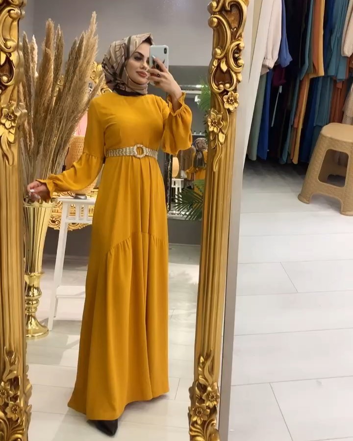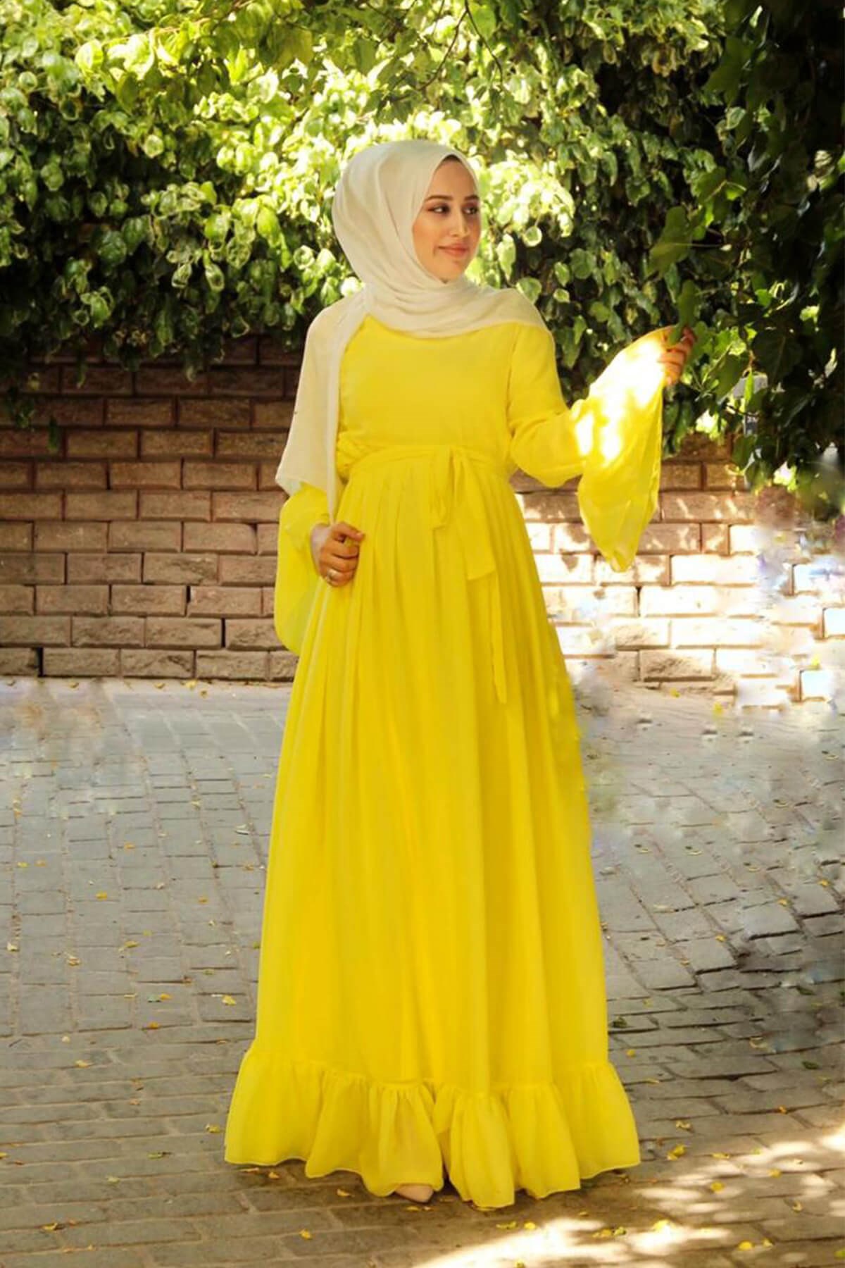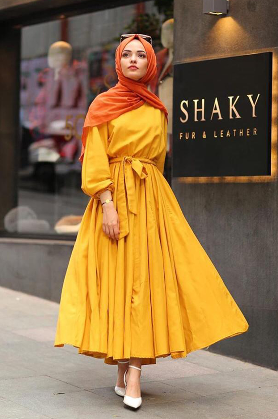 Sarı Tesettür Elbise Kombinleri / Galeri