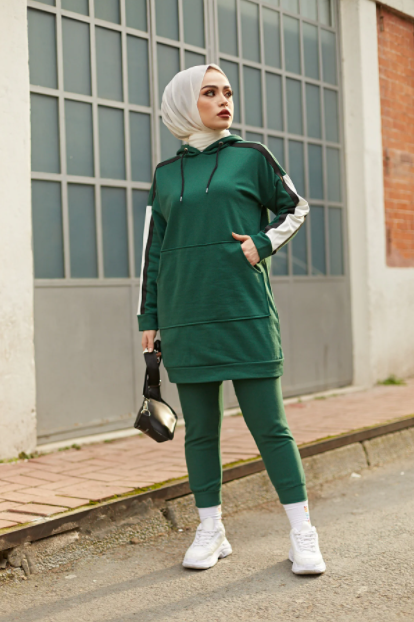 Son olarak ise rahat tesettür kombinlerine bakalım. Bu tesettür kombinlerinde modelin üzerindeki gibi beyaz çizgileri olan eşofman takımlarını tercih edebilirsiniz. Bu sayede oldukça şık görüntüleri sağlayacaksınızdır. Beyaz çizgileri sayesinde beyaz spor ayakkabı ve beyaz baş örtüsü ile kombinleyebilirsiniz. Ancak beyaz rengi aşırı öne çıkartmak istemiyorsanız o zaman krem renklerini de kullanmanızı öneririz. Diğer görsellerimize de bakabilir ve oldukça şık kombinler yapabilirsiniz.