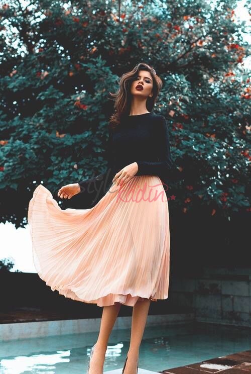 3) KÜÇÜK PİLELER : Bu etek türünü farklı uzunluklarda kullanabilirsiniz. Çalışma ortamında bu etek türünü kullanmak uygun olmayacaktır. Daha farklı günlerde kullanacağımız bir tarzdır küçük pileli etekler. Değişik kombinlemelere uygundur.
