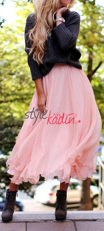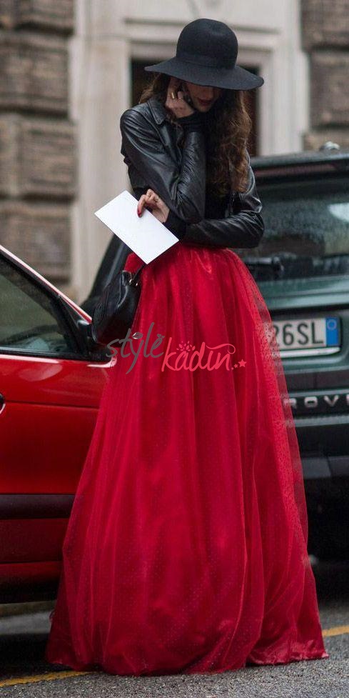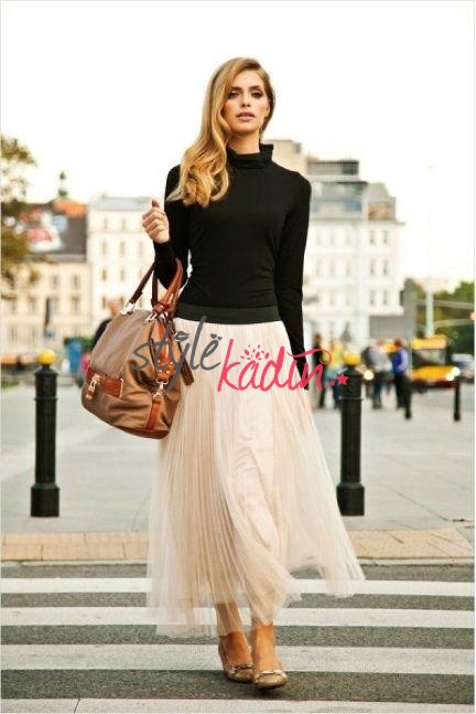 Bazı uzun etekler tüllü tarzlarda modellenmiştir. Zerafet katmak için tüllü desenler ön plana katılarak ince dokunuşlar sağlanmaya çalışılmış. Mini eteklerde olduğu gibi uzun eteklerde de kombin yapma seçenekleri bir hayli fazladır.Kombin yapma seçeneğinin fazla olması bayanlara esneklik ve rahatlık sağlar.Şık bir yemek için,bir koleksiyon gecesine davetli iseniz,toplantılarda,doğum günlerinde,günlük kullanımlarda uzun etek kombinlerini rahatlıkla kullanabilirsiniz. Çağdaş,şık bir kombin için uzun etek,bluz ve gözlüklerle güçlü bir kombin yapılabilir.Farklı olayım derken iddalı bir uzun etek kombini isteyenler için gömlek doğru bir seçenek olacaktır. Gömlekle beraber etek altına uyumlu bir ayakkabı seçmelisiniz.Ayakkabılarınızın renginin de uyumlu olmasına dikkat etmelisiniz. Modern Cepli Uzun Etek Modelleri
