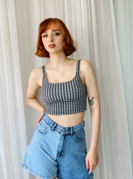 Crop top modelleri oldukça şık ve farklı modellerden oluşmaktadır. Hemen galerimize baktığımızda gördüğümüz gibi farklı renklerin bir birleşmesidir diyebiliriz. Görsellerimizde pötikare desenli crop top modeli hemen dikkatimizi çekmektedir. Bu crop top modeli U şeklindeki yakası ile oldukça şık bir görüntü sağlamaktadır. Göğüs kısmına baktığımızda ise kendinden sutyenli olduğundan dolayı sutyen olarak sorun yaşamazsınız. Ancak yine de özel destekli sutyenlere ihtiyaç duyuyorsanız o zaman straplez sutyen modelleri tercih edebilirsiniz. Görselimizdeki manken bu crop modeli ile kot şortu kombinlemiştir. Eğer kot şort kullanmak istemiyorsanız siyah deri etek modelleri gibi modelleri tercih edebilirsiniz.