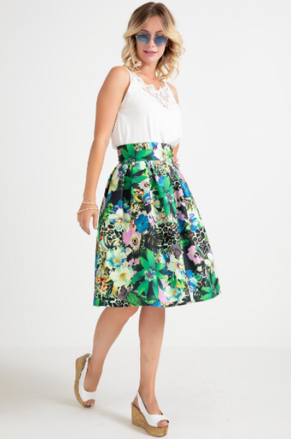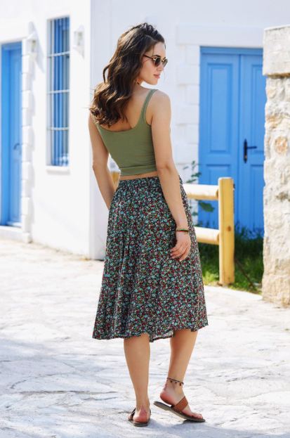 Midi etek modelleri oldukça şık modellerdir. Etek modellerine bakarken karar vermeniz gereken şeylerden bir tanesi de desenli mi yoksa desensiz kumaş isteyip istemediğinizdir. Desenli kumaş istiyorsanız o zaman görsellerimiz arasındaki çiçekli olan model tam size göredir! Bu modelde kırmızı ve beyaz çiçekler bulunmasının yanı sıra sarı çiçekler de vardır. Sarı çiçeklerin tarzı diğer çiçeklerden farklı olduğu için oldukça şık bir hava katmıştır. Arka plan rengi siyah olduğundan bu midi boy etek çok zarif görünmektedir. Manken gibi gömlekle kombinlemenin yanı sıra siyah crop toplarla kombinleyebilir ve oldukça zarif bir şıklık kazanabilirsiniz.