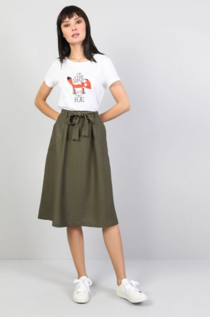 Midi eteklere bakarken eğer desenleri olmasını istemiyorsanız o zaman görsellerimize bakmaya devam edelim. Görsellerimizde taba renkli oldukça şık ve sade bir etek modeli bulunmaktadır. Küçük yırtmacı sayesinde göz alıcı görünmektedir. Ayrıca yine o yırtmaç sayesinde etek modeli sıradan olmaktan çıkarak oldukça şık bir görünüme kavuşmuştur. Mankenin yaptığı gibi krem ve taba rengine yakın renklerle kıyafetinizi kombinleyebilirsiniz. Ayrıca beyaz rengini de kullanabilirsiniz. Taba rengi insanlarda pahalı izlenimi yaratmaktadır. Bu yüzden siz her ne kadar ucuza alırsanız alın etek pahalı gibi görünecektir. Bu yüzden bileklik, yüzük gibi uygun aksesuarlarla kombininizi tamamlamanızı tavsiye ederiz. Eğer yazımızı beğendiyseniz görsellerimizin kalanına bakmayı ve yorum yazmayı unutmayın!