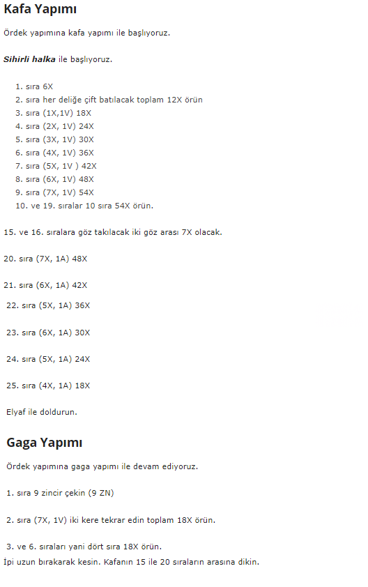 Sevimli Ördek Amigurumi Tarifi
