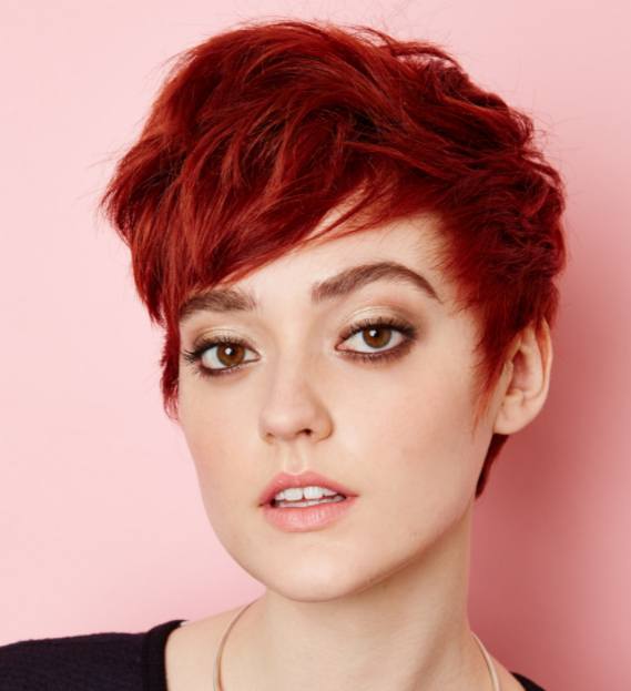 Yaza uygun saç tasarımları yazımıza öncelikle kısa modellerden başlayalım. Saç modellerine bakarken modelini yüz tipinize göre karar vermenizi tavsiye ederiz. Bu sayede kendinize yakışmayacak saç modellerinden uzak durmuş olursunuz. Eğer yüz tipiniz oval ya da kare gibi çeneli bir tipse o zaman çok kısa saçları kullanabilirsiniz. Çene kısmınız daha köşeli olduğundan çık kısa saç modelleri sayesinde kafanız yüzünüze bir yuvarlaklık verecektir. Ayrıca görseldeki model kırmızı saçlı olması da etkiyi arttırmıştır. Kısa saç modelleri çok fazla olsa da yanların da uzun olduğu modeller bu sıralar daha popülerdir. Ancak eskisi gibi kazıtma yöntemlerini de elbette kullanmaya devam edebilirsiniz.