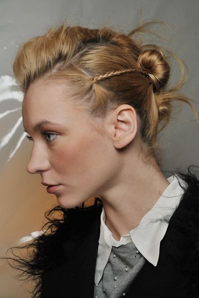 Bu şık saç modeli size daha şık bir görünüm yakalamanız için harika. Okulda özel bir durum için daha güzel bir kıyafet seçin ve yükse topuz saçınızı yapın. Bu topuz için önce yükse bir atkuyruğu modeli yapın ve içine, etrafına rulo yaparak sarın.Bu saç modelini daha önce yapmadıysanız sabırlı olun ve denemeler yapın.Saçlarınızı topuzun tüm etrafını sardığından emin olun ve sprey sıkın.