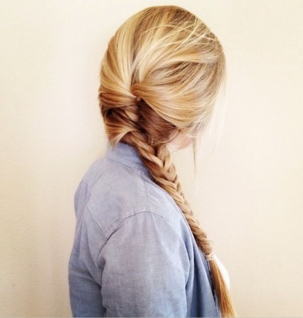 Balık kuyruğu örgü saç modelini yapıp saçlarınızı hafif karıştırın.Bu sevimli saç modeli hemen hemen her gün okul için çok şirin bir saç modeli olduğunu ve kolay yapıldığını unutmayın.Saçınızı ayırın ve istediğiniz tarafa doğru düşük bir atkıyruğu olacak şekilde örün.Daha dağınık görünmesi için örgülerinizi yavaşça çekin ve saç spreyi ile sabitleyin.