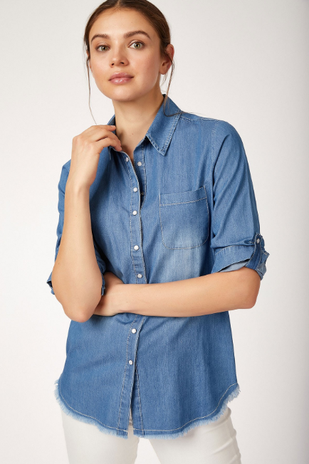 Pantolonlu Kadın Kot Gömlek Kombinleri