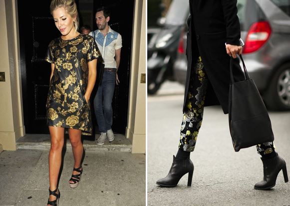 Bu sezon trendlerinden, süslü detaylar ve abartılı brokar detayları süper ! Barok stili görkemli bir görünüm üstünden zengin altınlar, erik, siyahlar ve bunun tüm ilgili detayları aksesuarlara ve kıyafetlerde yansımalarını taşıyor.